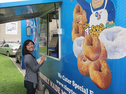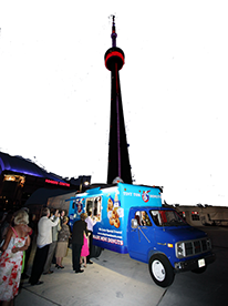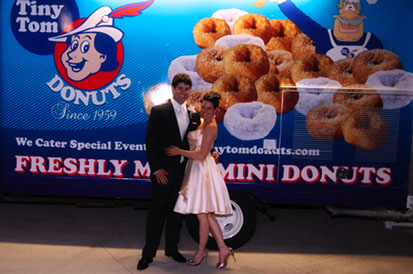 If your special event is to be held outdoors, depending on availability, we may be able to provide a Tiny Tom Trailer (as seen at the CNE) or our mobile Donutmobile. Both units feature the actual donut making equipment and are capable of producing up to 150 dozen (1800 individual) hot and fresh donuts per hour. Included with this option will be professional servers, four delicious flavours, and all of the accessories required to serve our famous little donuts over an agreed upon timeframe. With your direction we will package 4, 6 or 12 flavoured donuts, (cinnamon sugar, icing sugar, apple n’ cinnamon, and chocolate), in each bag.