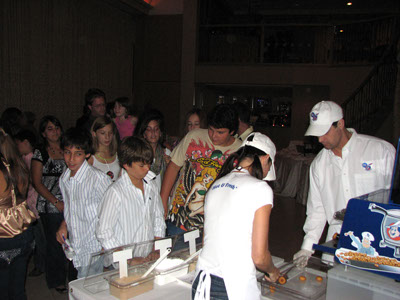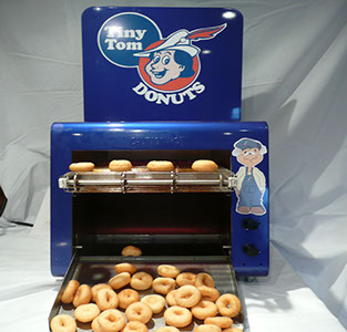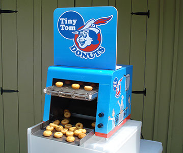 We will provide two professional servers, one custom Tiny Tom Conveyor Toaster, an agreed upon number of donuts, (minimum 1200 donuts), four delicious flavours and all of the accessories required to serve our famous little donuts within a three hour timeframe. With your direction we will package 4, 6 or 12 flavoured donuts, (cinnamon sugar, icing sugar, apple n’ cinnamon, and chocolate) in each bag.